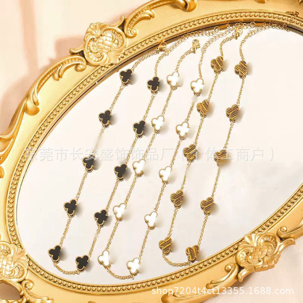 European and American Trendy 13mm Mother-Of-Pearl Four-Leaf Clover Ten-Flower Necklace 18K Titanium Steel Clavicle Chain Women's Jewelry Gift Wholesale Factory