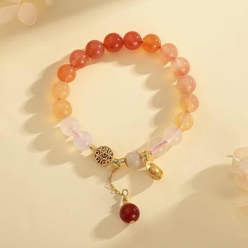 Natural Salt Source Agate Vintage Bead Jade Plum Blossom Bracelet with Fortune Pendant, New Original Sweet and Fresh Handmade Bracelet