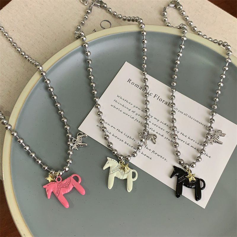 South Korea Dongdaemun Pony Craftsman Baked Paint Pommel Horse Metal Wind Chain Necklace Sweet Cool Fashionable Hip Hop Sweat Chain