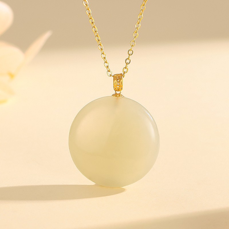 Natural Hetian Jade White Jade Round Pendant Women's Collarbone Necklace Round K Gold Accessible Luxury Gift for Girlfriend on Chinese Valentine's Day