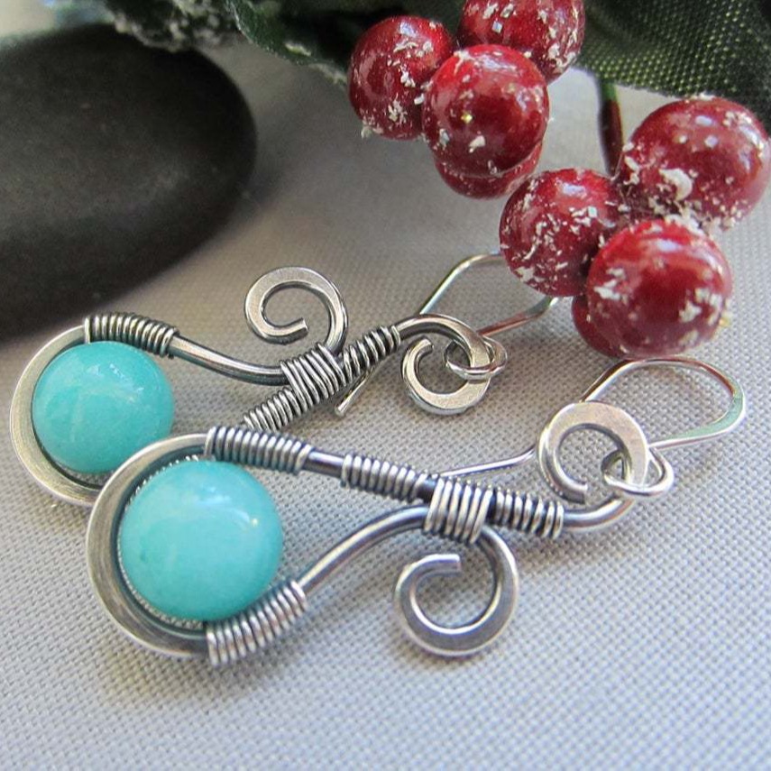 Rongyu European and American New Artisan Creative Amazon Blue Jade Earrings Vintage Silver Line Powder Stone Earrings