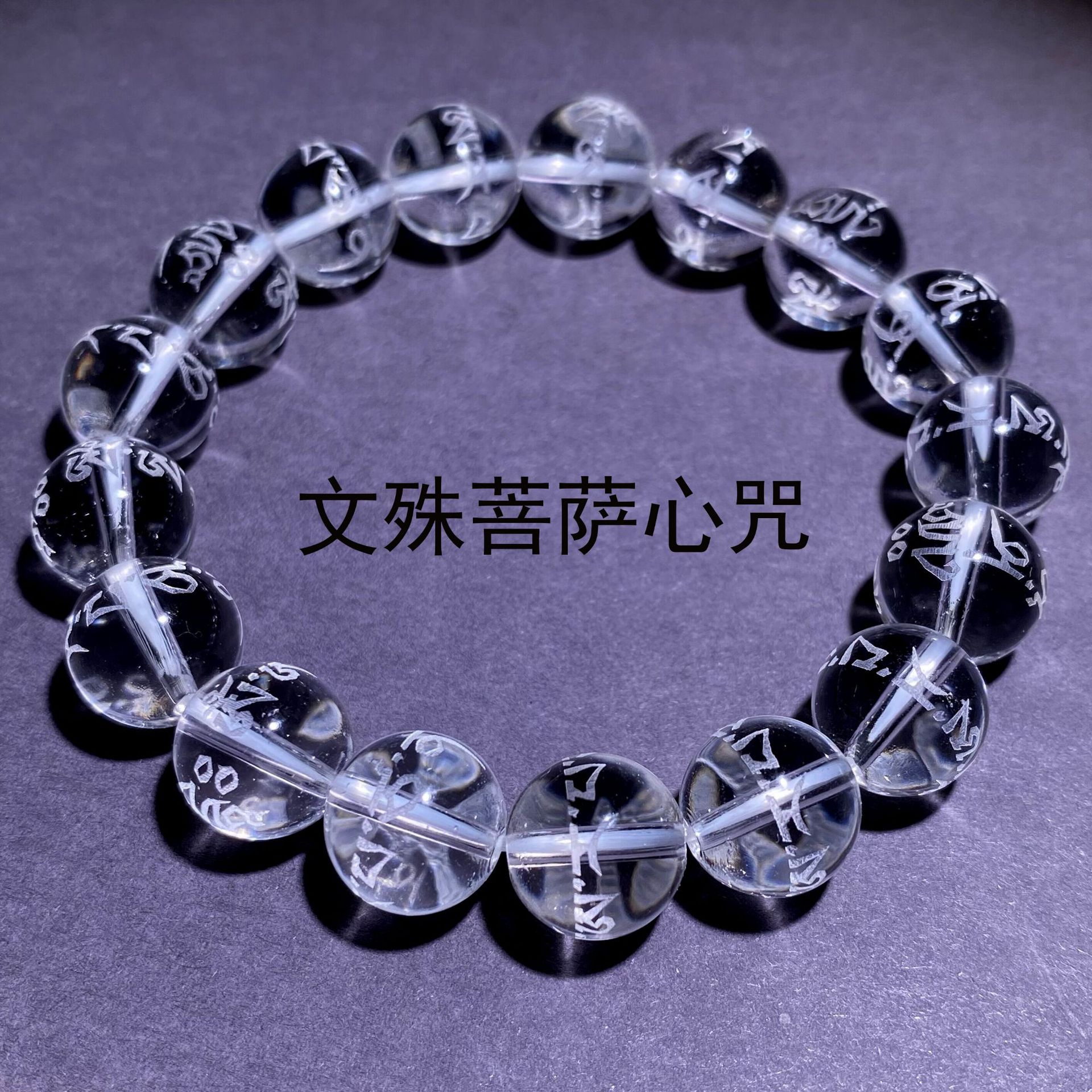 Manjusri Bodhisattva Bracelet Jewelry Bracelet Buddha Bead Factory Carving Micro-carved Natural White Crystal Scripture Hand Beads