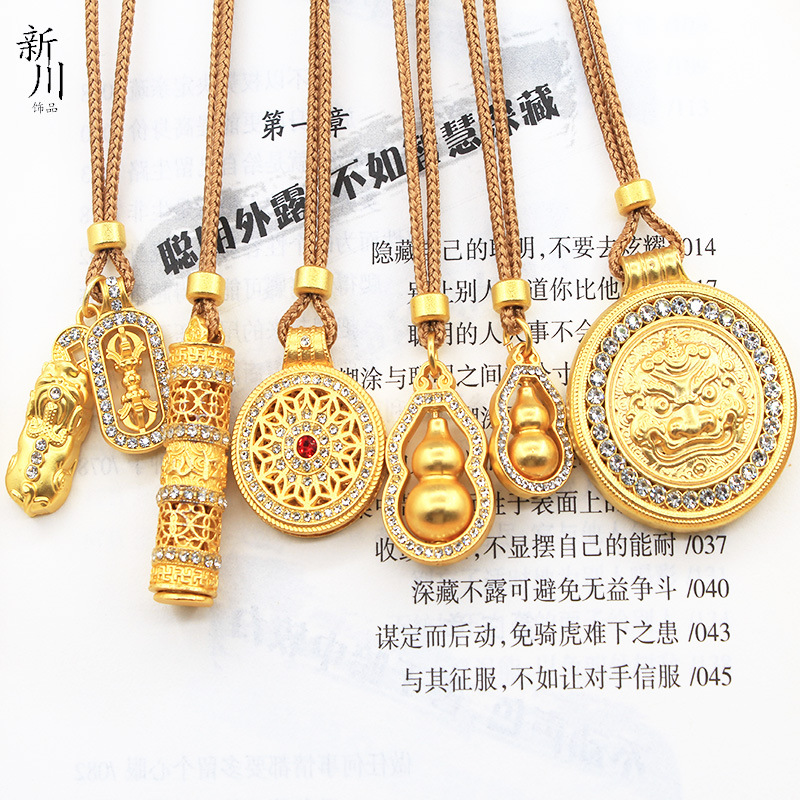 Ancient Sand Gold Creative Diamond Necklace Gold Store Same Style Unisex Safety Pendant Sweater Chain Ethnic Style Wholesale