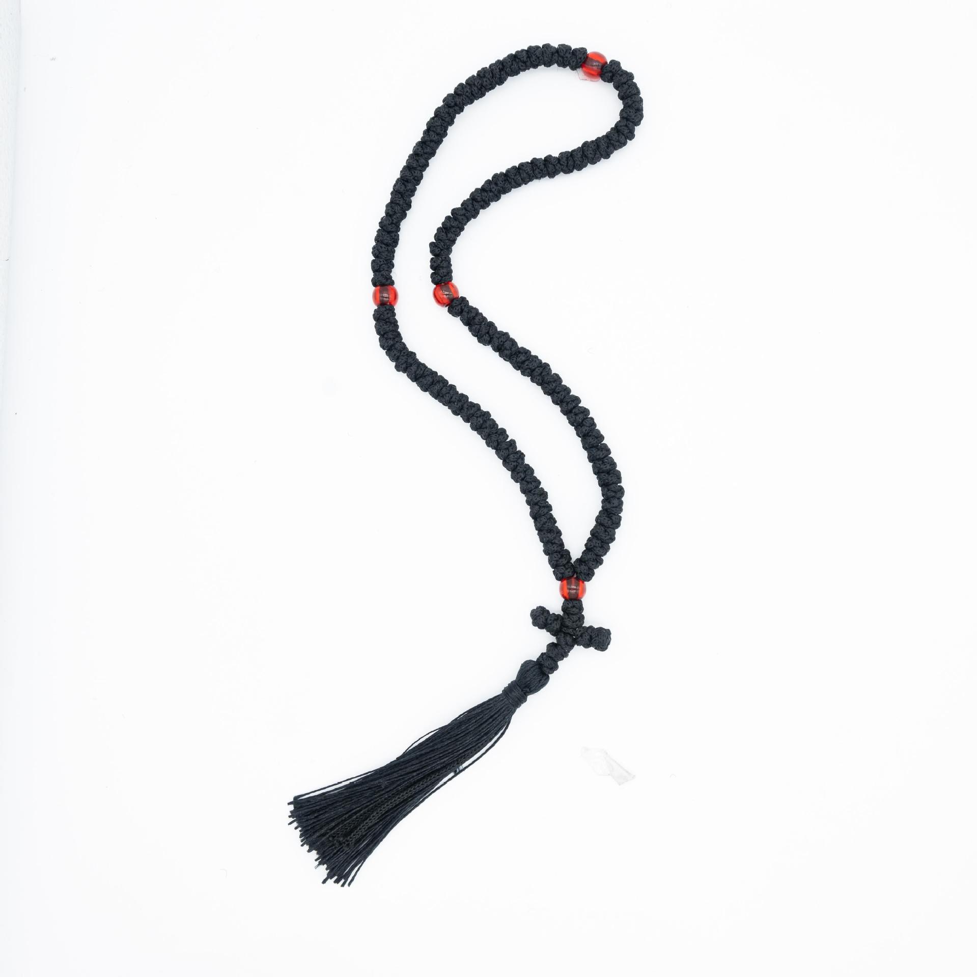 Cross-border Orthodox Greek Hand-woven Cross Prayer Necklace Tassel Prayer Red Bead 100 Knot Pendant