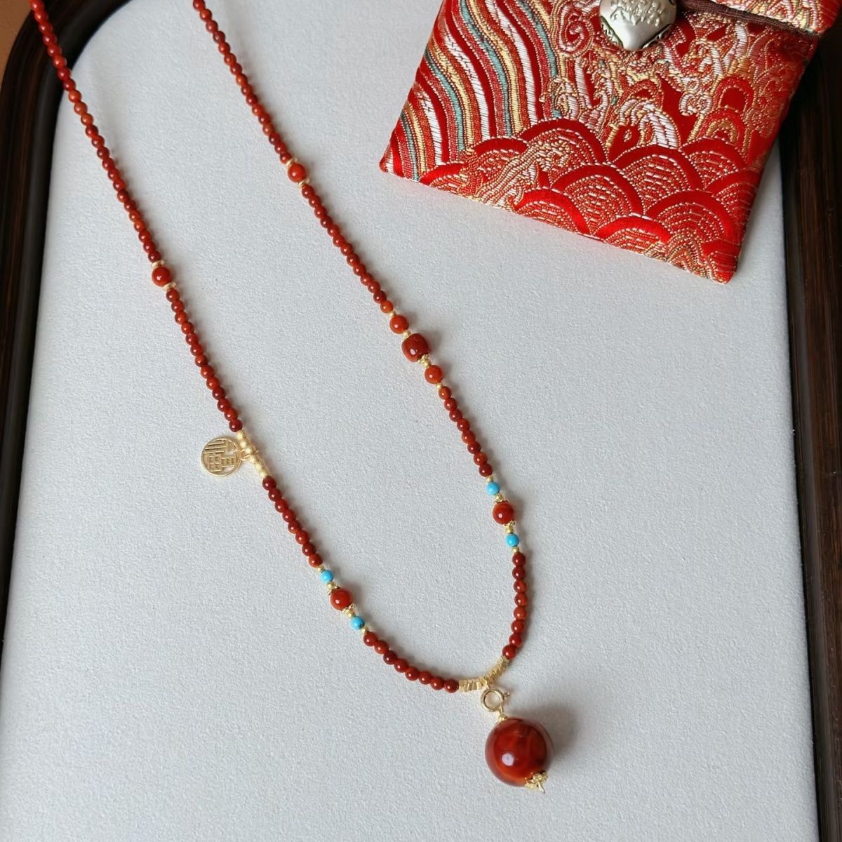 Original Design Southern Red Millet Bead Necklace Pendant Collarbone Necklace Universal Chinese Sweater Chain Red Agate Versatile