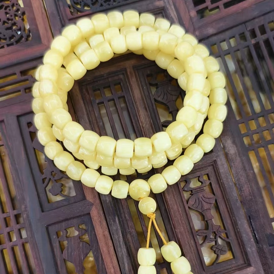 Second-Generation Amber Barrel Beads, Old-Style Beads, Goose Yellow, Chicken Oil Yellow, 108 Long String Pendant, Lanyard Bracelet Necklace