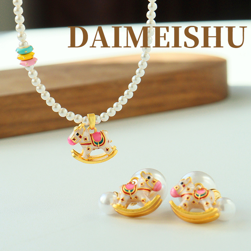 New Fashion Exquisite Color Oil Dropping Trojan Horse Shijia Pearl Necklace Retro Light Luxury All-match High-end Clavicle Chain