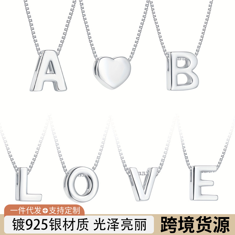 Cross-Border Fashion Glossy Letter + Heart Necklace Jewelry DIY Jewelry Making Outfit Ins Style Trendy Personality