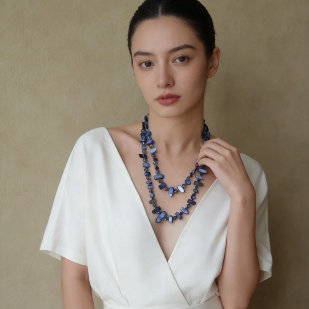 HEFANG What Buttons Pearl Necklace Earrings Beads Multi-layer Fantasy Nebula Seal Necklace Bracelet Ring