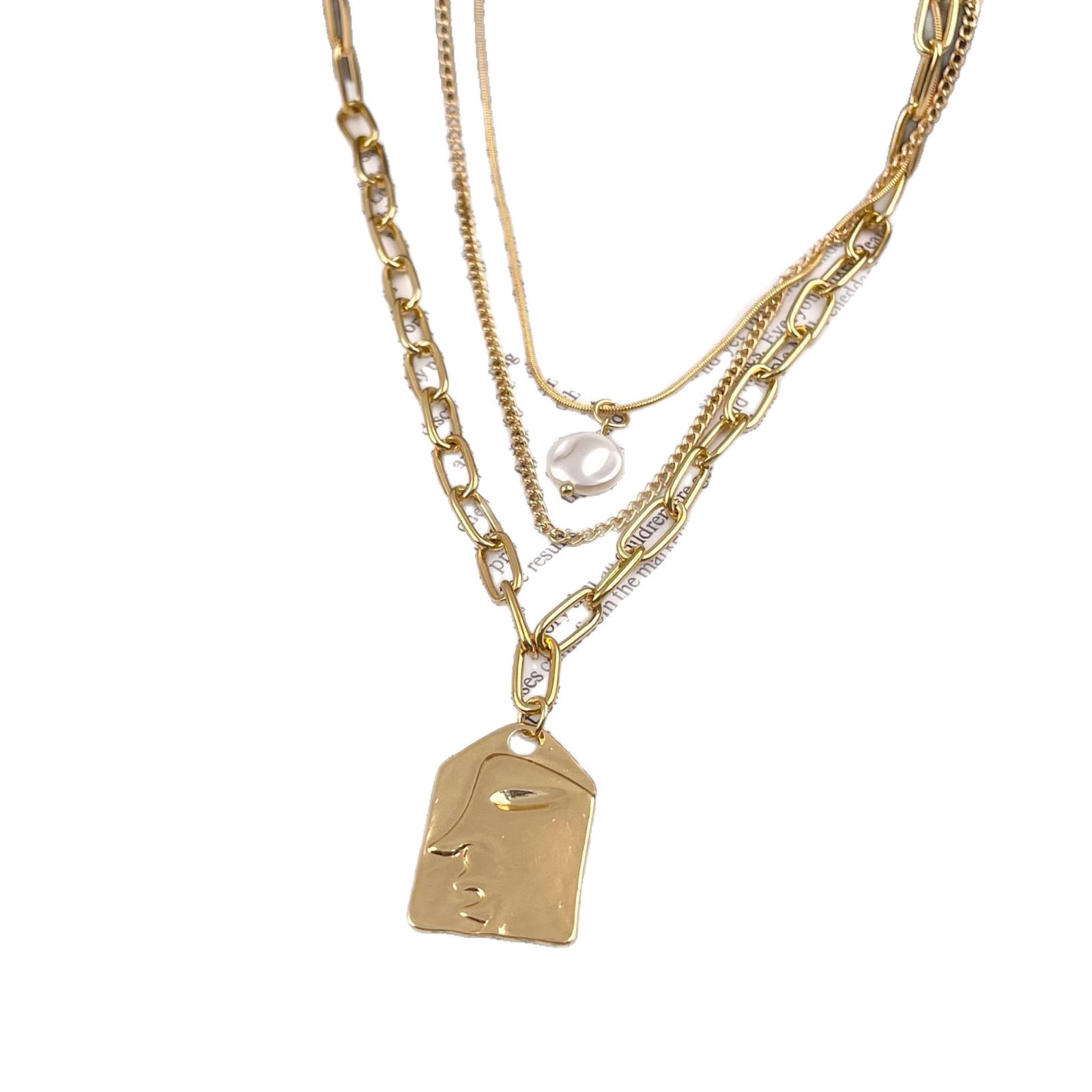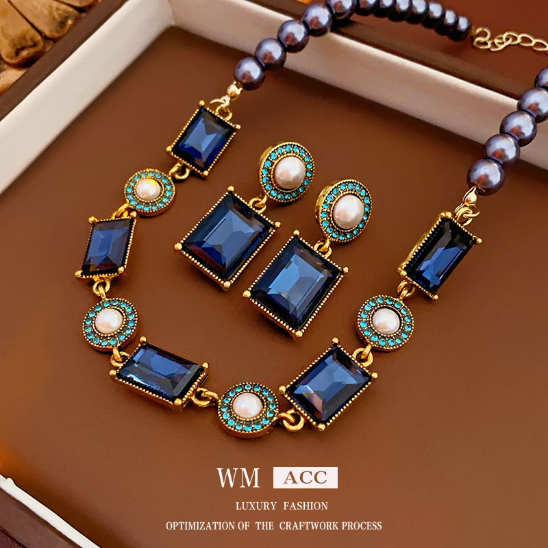 European and American Fashion Hangers Retro New Copper Snake Chain Necklace Baroque Pearl Square Brand Necklace Set Chain