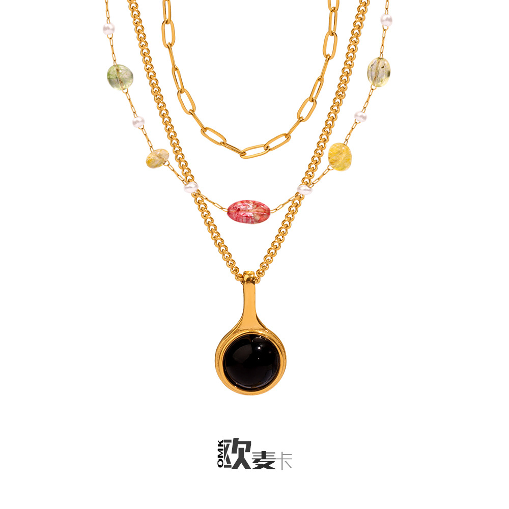 European and American Imitation Natural Stone Acrylic Beaded Short Necklace Personalized Retro Clavicle Chain Qingdao Source Factory Wholesale