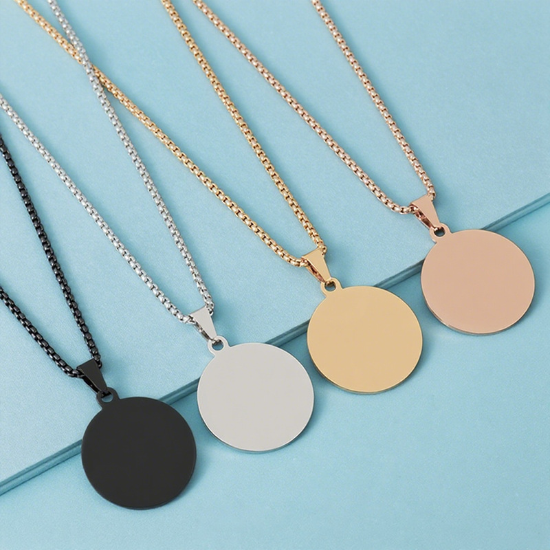 Stainless Steel Necklace in Stock Cross-Border Outer Hole Round Pearl Chain Blank Laser Color Printing Material Engraving Stainless Steel Necklace
