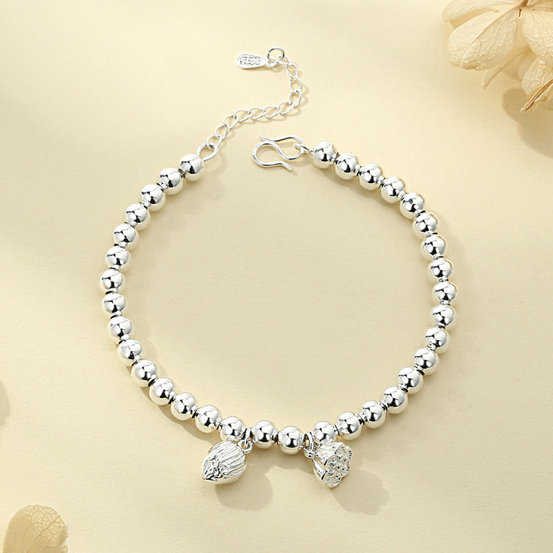 New Chinese-style Round Bead Two-generation Lotus Bracelet Women's Copper 925 Silver Plated Handmade Gift Simple Elegant All-match Bracelet