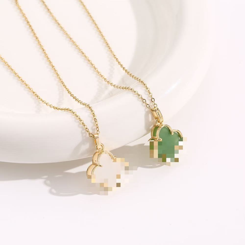 Fashion Chinese style clavicle chain ancient gold-plated jewelry inlaid imitation Hetian jade pendant clover necklace jewelry for women