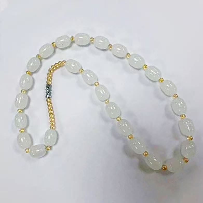 Fashion Joker Necklace Women's Barrel Bead Necklace Bead Chain Woolen Chain Handmade Imitation Afghan White Jade Necklace