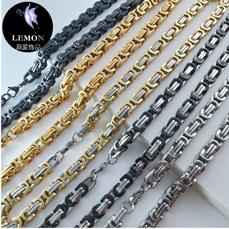 Factory Ready Stock Multi-Specification Stainless Steel Byzantine Handmade Chain Square Link Chain Imperial Chain Universal Link Chain Bracelet Necklace