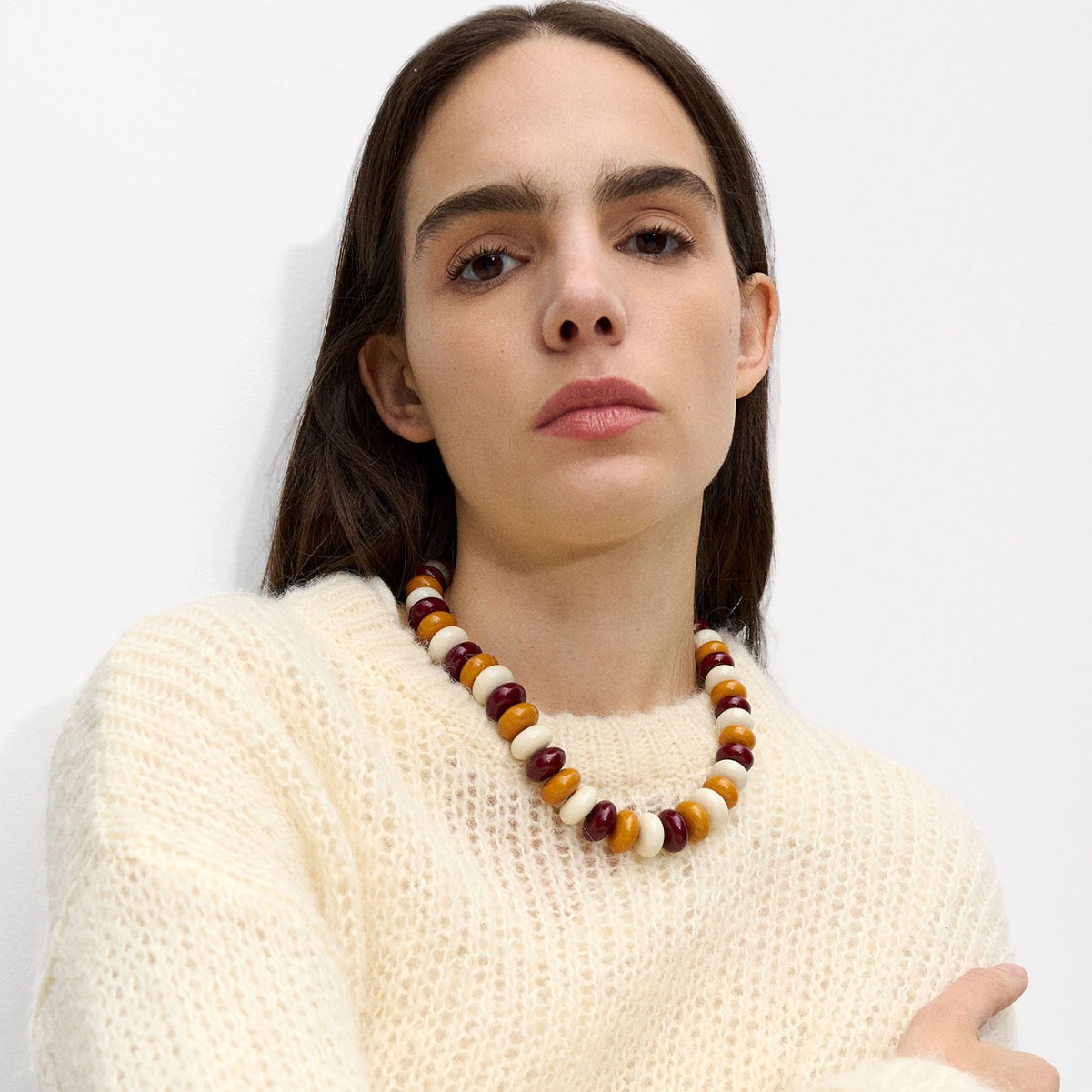 European and American Cross-Border Bohemian Style Plastic Geometric Flat Beads Hand-Woven Beads Women's Necklace Holiday Gift Daily