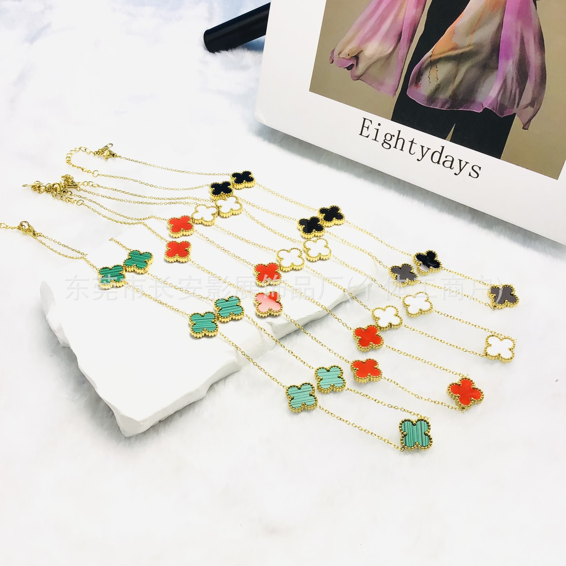 Cross-border four-leaf clover seven-flower fritillary necklace titanium steel 18K light luxury high-end clavicle chain factory direct sales