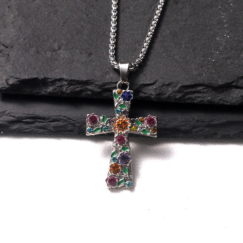 Sweet Cool Style Spicy Girl Cross Necklace for Women with Heavy Craftsmanship and Diamond-Studded Gothic European and American Style Y2K Necklace Wholesale from the Manufacturer