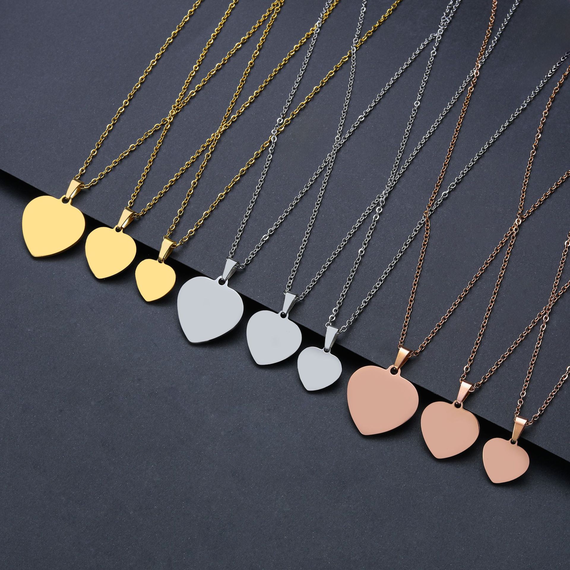 Metal Necklace in stock Cross-border Heart-shaped Blank Laser Color Printing Material Holiday Gift Engraving Stainless Steel Necklace