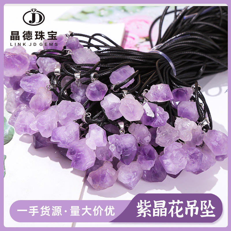 Jingde Jewelry Natural Amethyst Teeth Pendant Lavender Amethyst Flower Crystal Cluster Necklace DIY Jewelry Live Supply