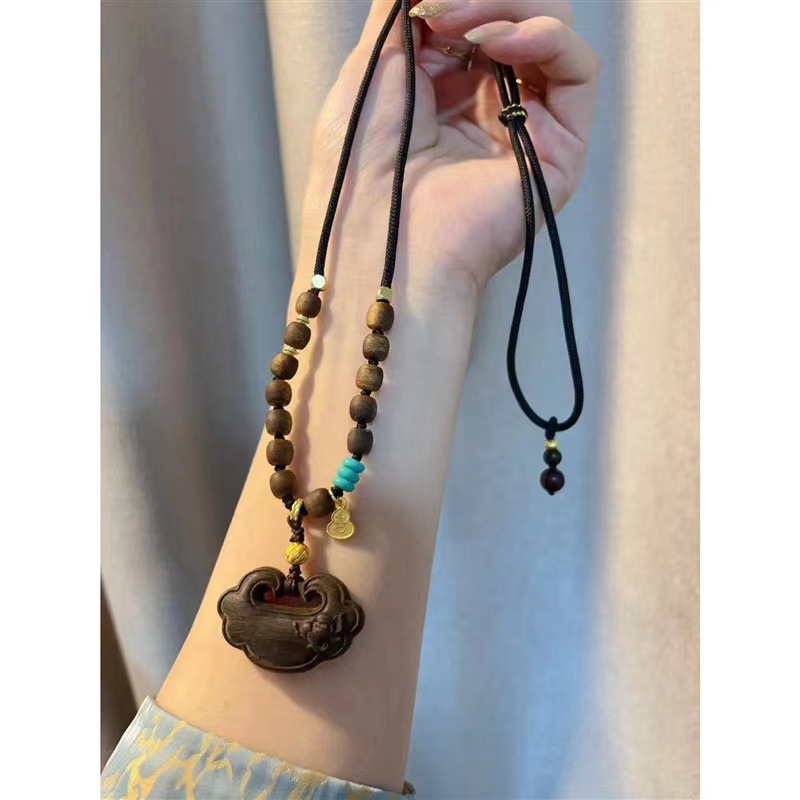 Original design agarwood lotus flower big ruyi lock necklace with fine weaving agarwood sweater chain gift
