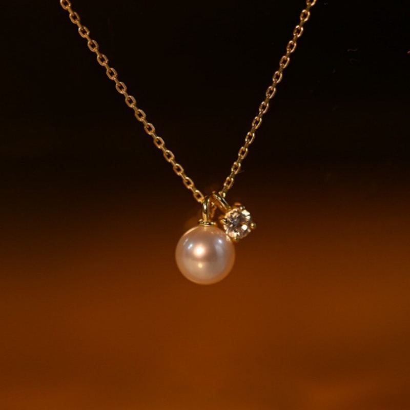 925 Sterling Silver Plated 18K Gold Pearl Bead Necklace Simple French Clavicle Chain Single Pendant Small Grain Light Luxury