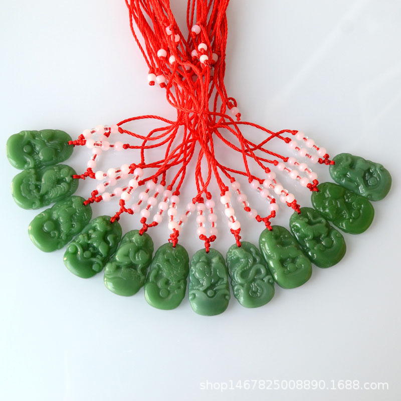 2024 Year of the Dragon New Imitation Jade Zodiac Pendant Men and Women Red Rope Necklace Pendant Children's Pendant Jewelry Gift