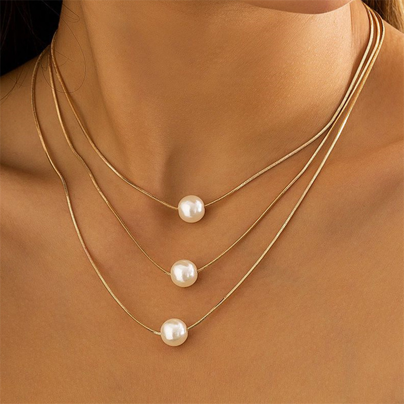 European and American Cross-Border Jewelry Geometric Thin Chain Snake Bone Necklace Elegant Retro Multi-Layered Pearl Necklace for Women