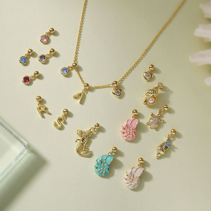 European and American Cross-Border Copper Inlaid Colored Diamond Round Letter Splicing Necklace Personalized DIY Conch Turtle Mermaid O-Shaped Necklace