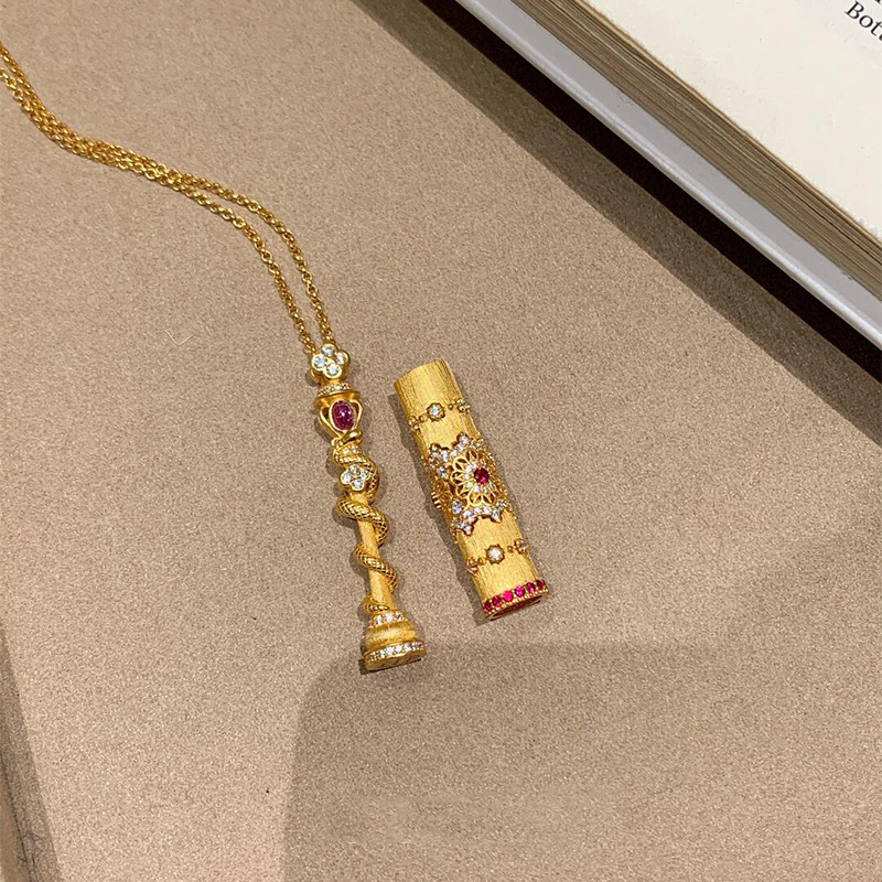 European and American New Products Simple Gothic Retro Ruby Cross Pendant Necklace Spot Direct Sale