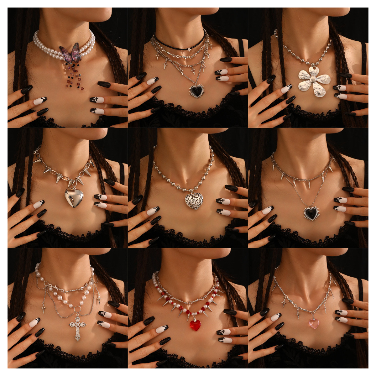 Cross-Border Hot Selling European and American Fashion Temu Shein Black Beads Cut Out Heart Inlaid Emerald Necklace Bracelet