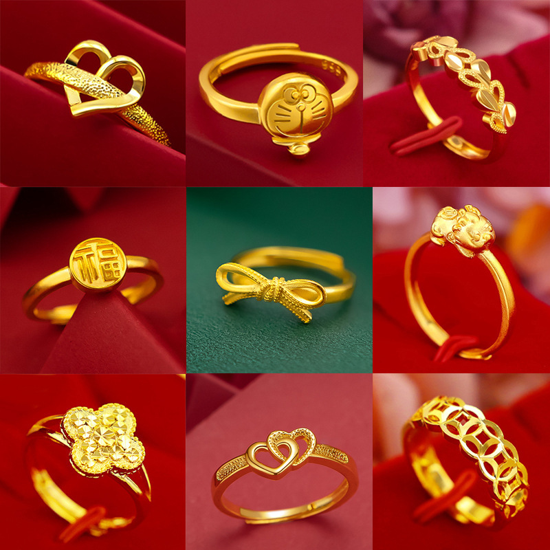 Vietnamese Sand Gold Women's Rings with Various Niche Designs, Including the Character for Good Fortune, Pixiu, Heart, Imitation Brass, Gold-Plated Finger Rings and Jewelry