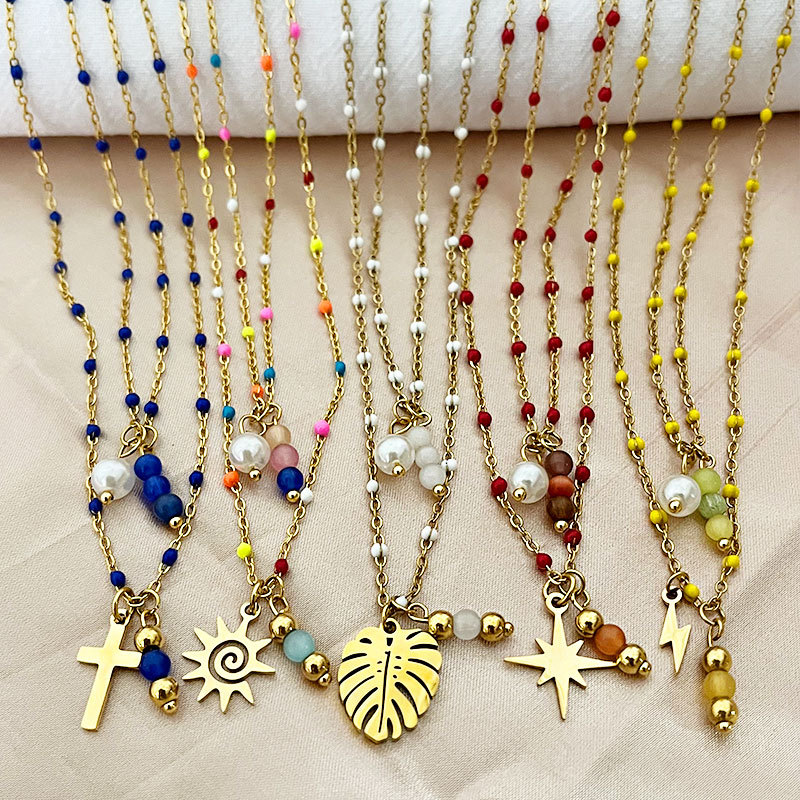 Cross-border Wholesale Natural Stone Stainless Steel Mulang Star Pendant Necklace Chain 18k Gold Plated Pearl Ladies Jewelry