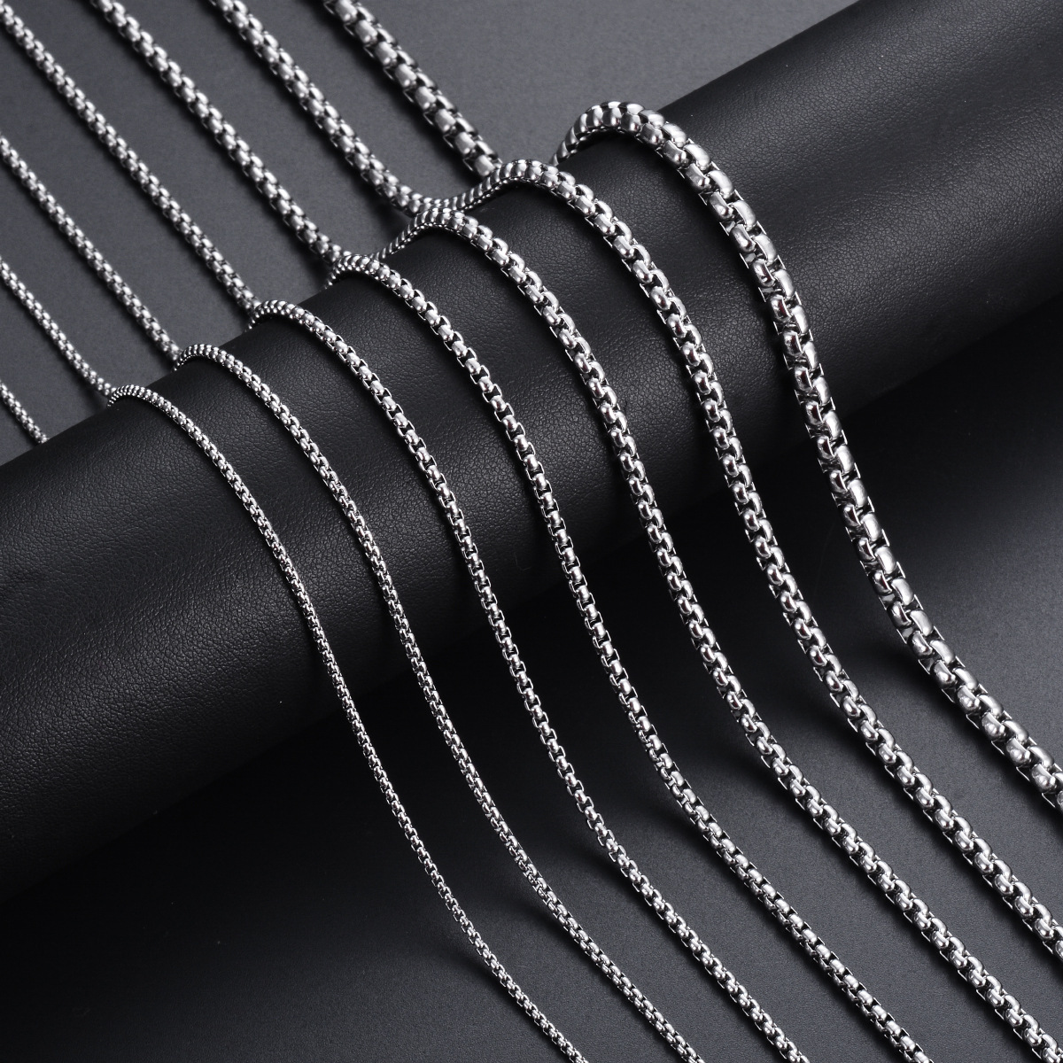 European and American stainless steel square pearl jewelry necklace titanium steel square matching chain necklace hip hop trend diy wholesale