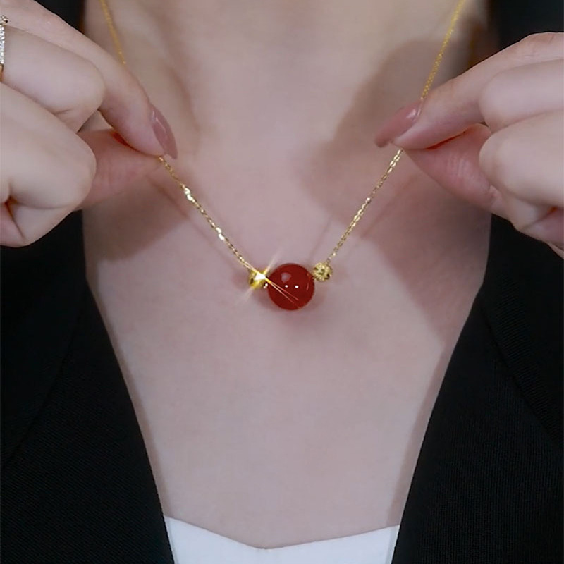 Difeng 999 Sterling Silver Acacia Bean Transfer Bead Necklace Women's TikTok Same Style Red Agate Clavicle Chain ins Light Luxury Jewelry