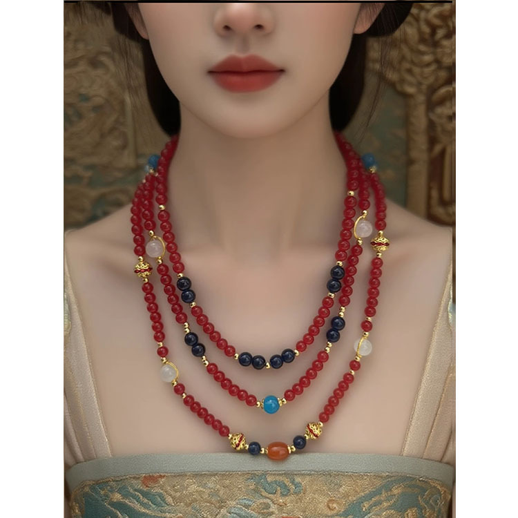 Imitation Agate Red Burnt Blue Necklace with Three Layers of Necklaces, Inspired by the Ghost Banquet of the Queen Mother