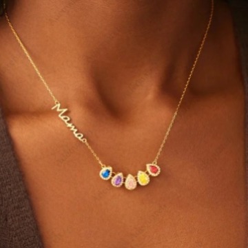 European and American Cross-border Fashion Trend Mother's Day Mama Water Drop Diamond Simple Necklace December Birthstone Personality