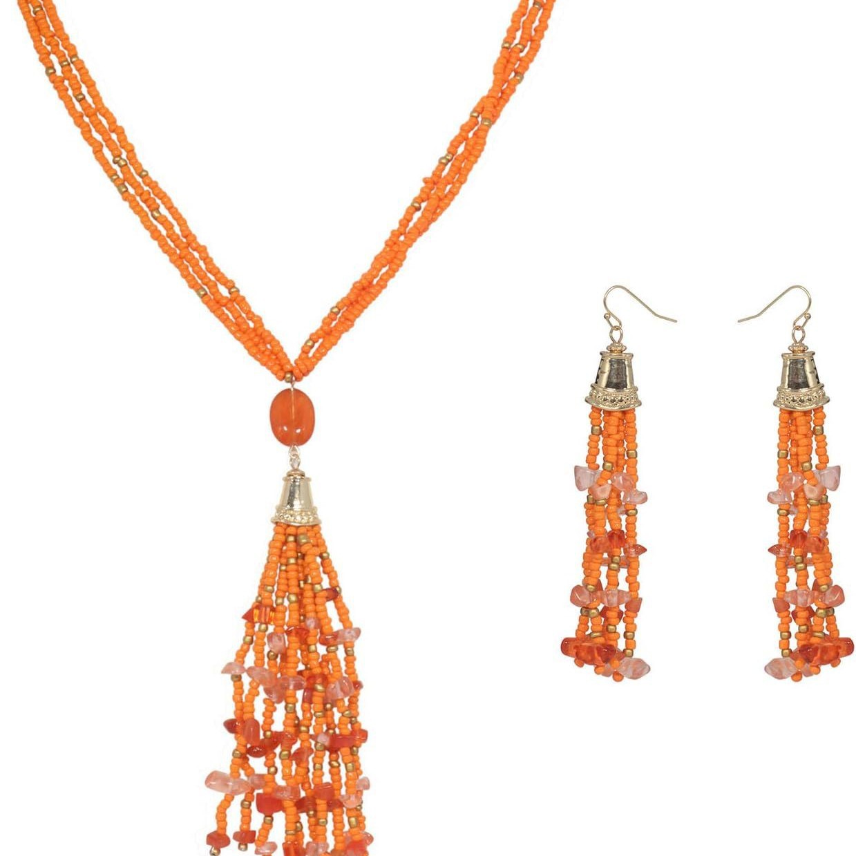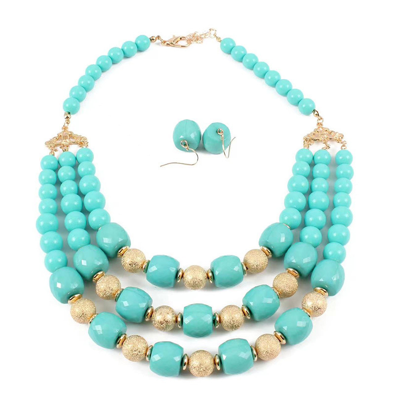 Factory direct European and American cross-border Bohemian crystal ethnic style multi-layer pop bead necklace earrings suit women