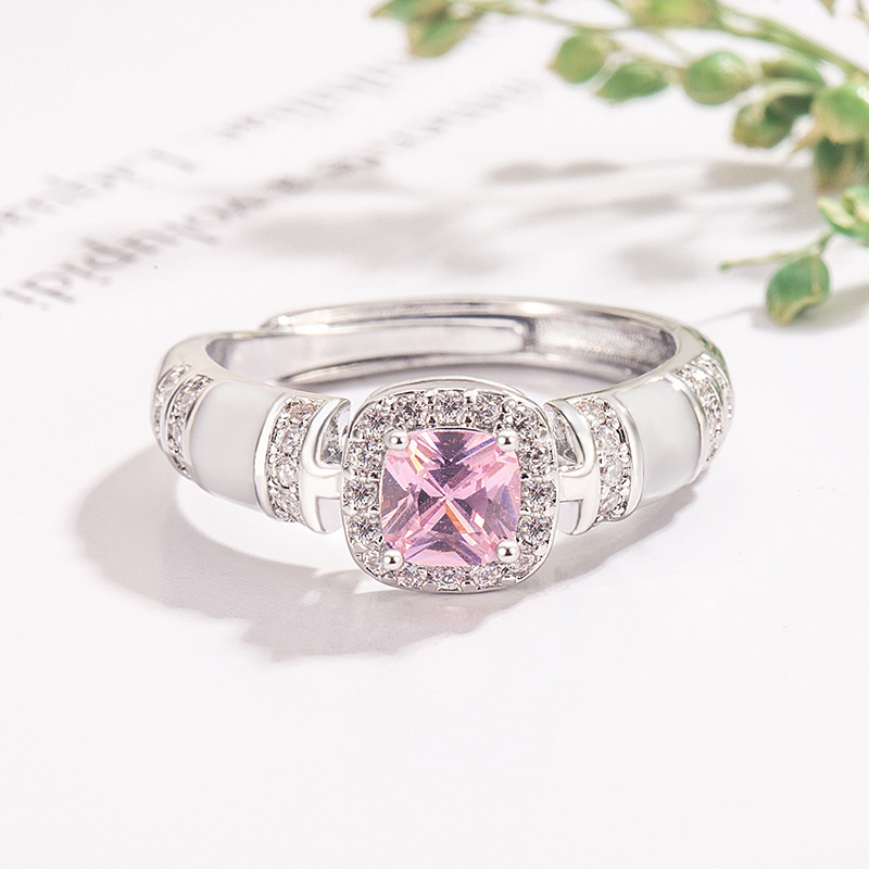 Pink Sugar Cube Imitation Mother-Of-Pearl Ring for Women, Light Luxury High-End Feel, Oil-Dropping Craftsmanship, Niche Design Index Finger Ring, Popular Style