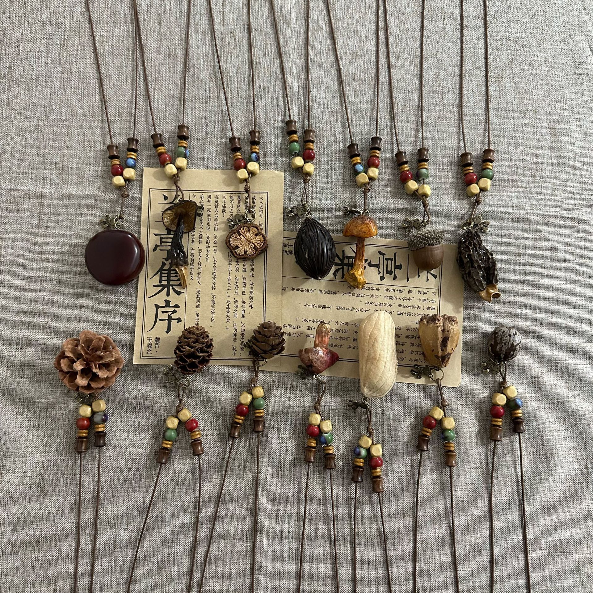 Miss Da/original handmade linen artistic cloth Lotus canopy Xi character Money Bag necklace hand embroidered all-match clothing pendant
