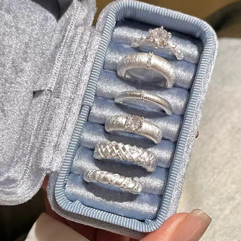 vintage Antique Zircon Plain Ring Brushed Wire Ring Women's Niche High-end Light Luxury All-match Stacked Finger Ring