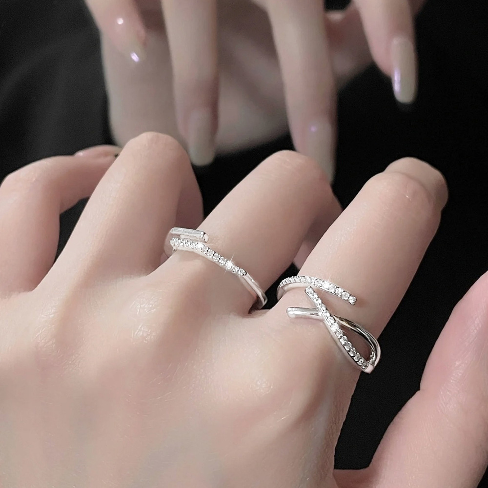 Ancient Cat Ning One-word Geometric Open Index Finger Ring Fashion Texture Cold Wind Flash Diamond Cross Ring for Women