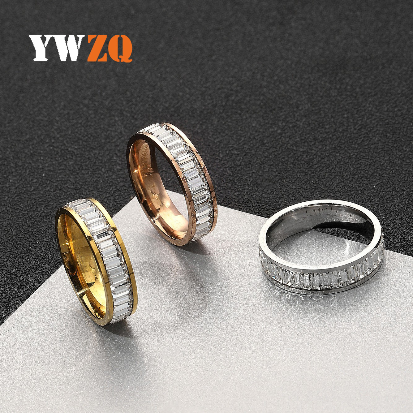 Cross-border new stainless steel ring rectangular zircon ring titanium steel diamond-embedded couple Ring Jewelry Factory Direct Supply