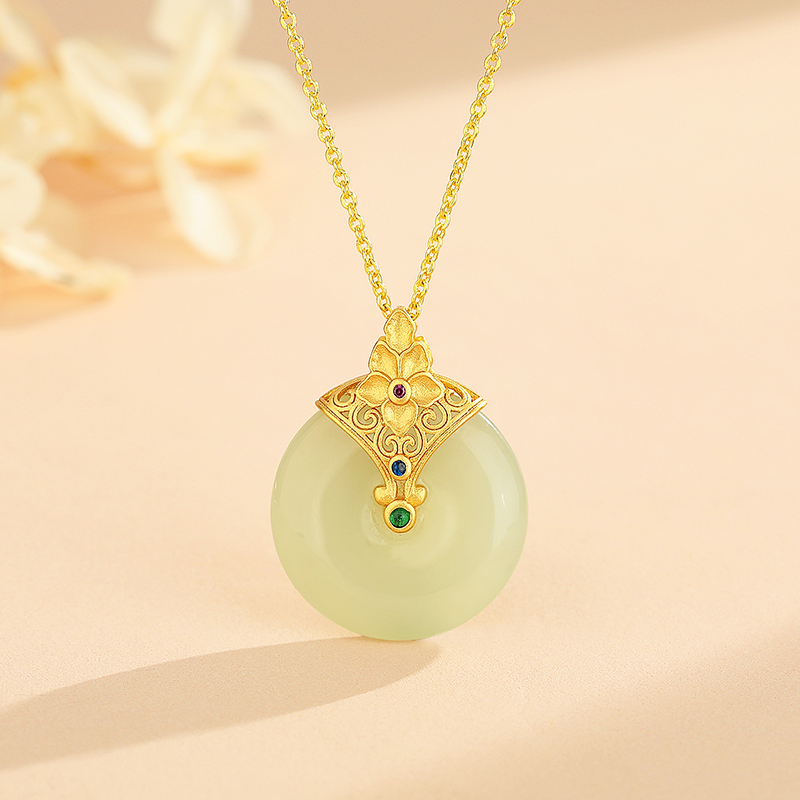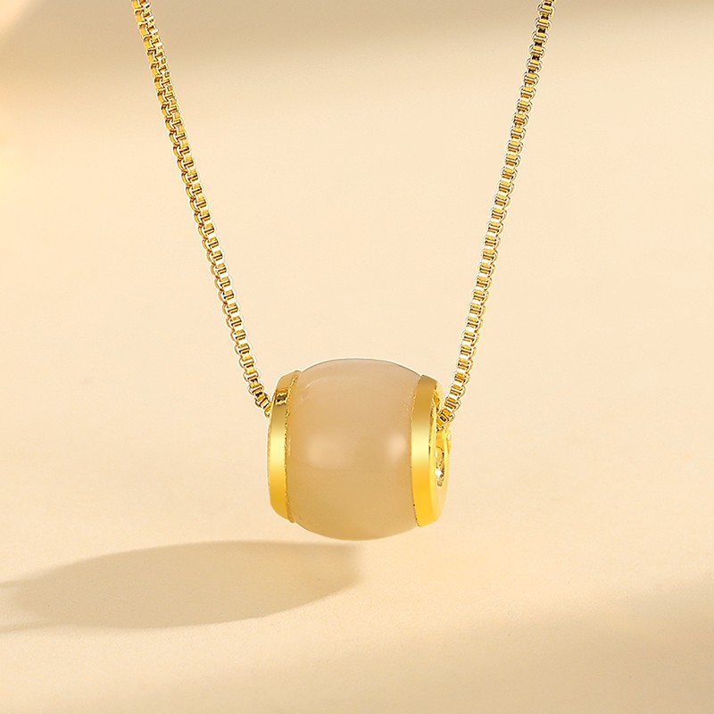 Natural Hetian Jade Pure Gold Inlaid Fortune Bead Pendant Women's Jade Collarbone Chain Necklace