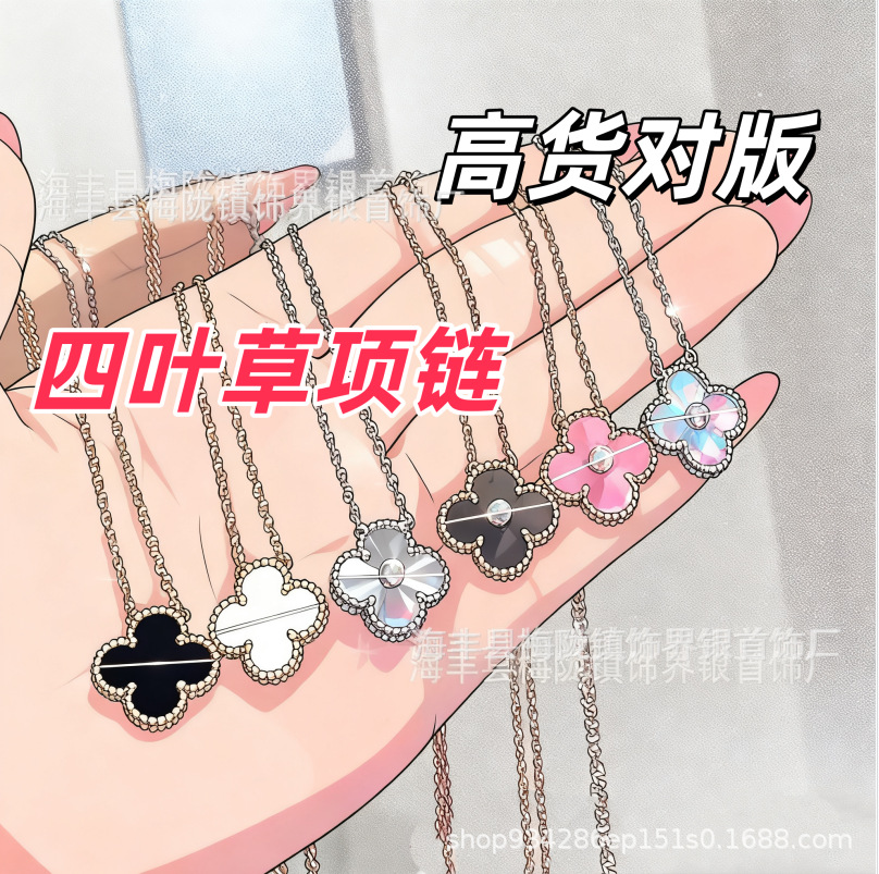 Four-Leaf Clover Single Flower Necklace for Women, Plated with 18K Gold, Rose Gold, Red Agate, White Mother-Of-Pearl, Niche Clavicle Chain Wholesale