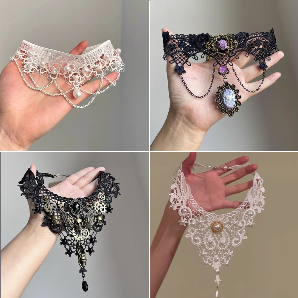 Cross-Border New Dark Gothic Style Lace Skull Necklace Fashionable Stylish Heavy Industry Halloween Cos Clavicle Chain