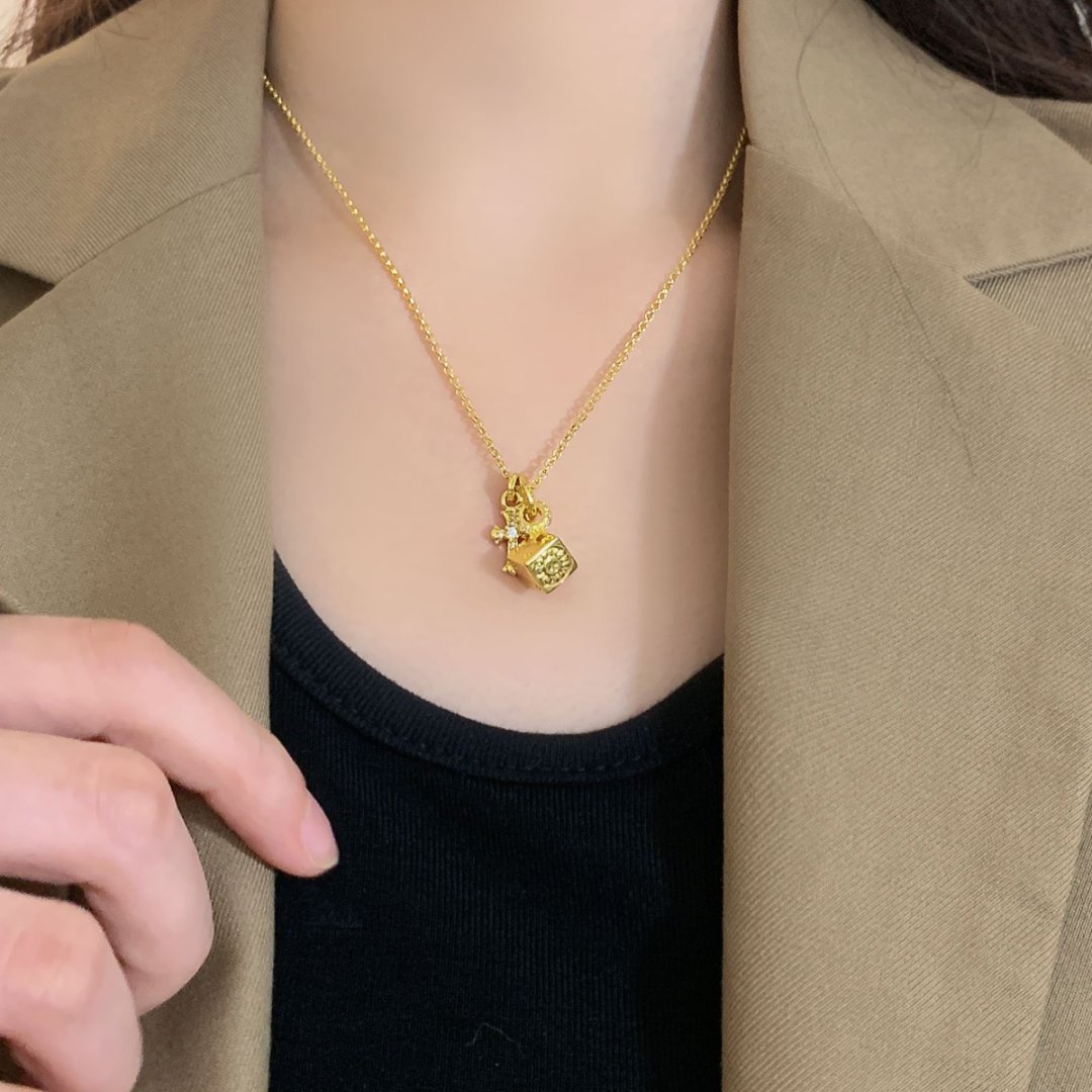 The Style Is Super Cool! Vintage Cross Solid Dice Pendant Necklace with a Light Luxury Design Sweater Chain Accessory