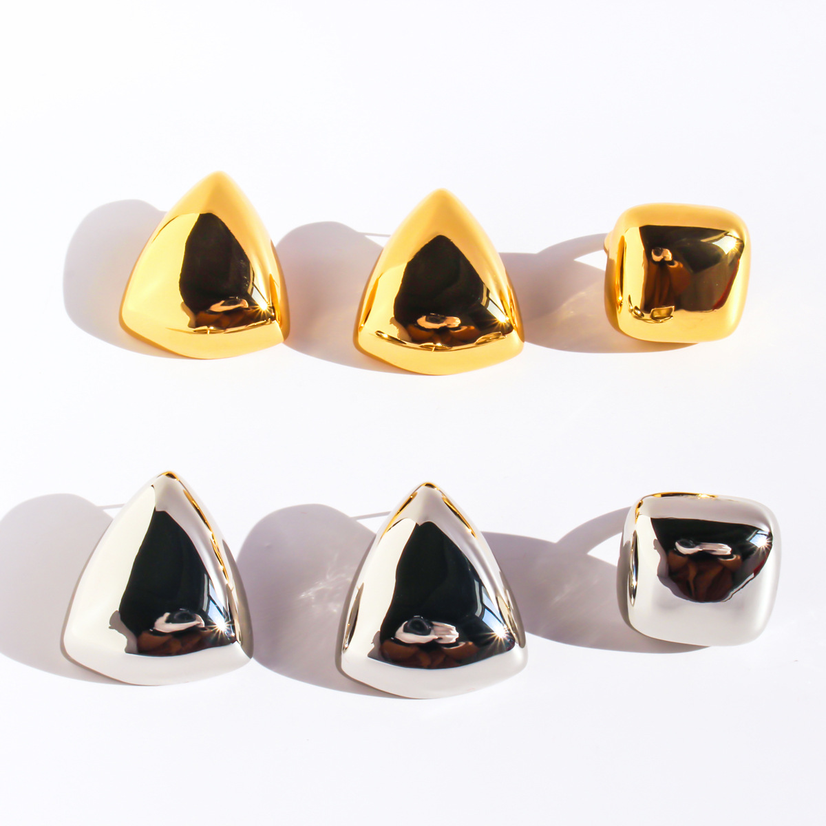 Europe and the United States heavy industry geometric triangle exaggerated earrings polished texture metal wind square open ring suit 517