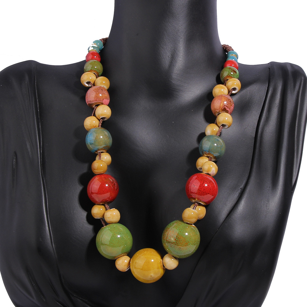 W911 New Creative Retro Ethnic Hand-woven Clavicle Chain Artistic All-match Ceramic Necklace Accessories